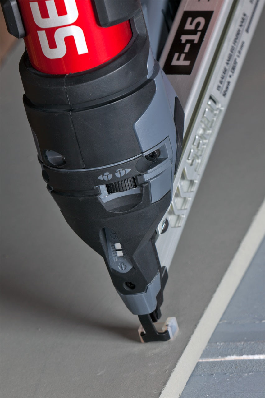 Pressing the trigger releases pressure, at the same time pushing the piston to the nail driving. In a fraction of a second, the battery regulates the piston, allowing 2-3 nails to be driven per second. No need to change gas cartridges, no more annoying gas smell. There are no equals to the Fusion nailing tool.